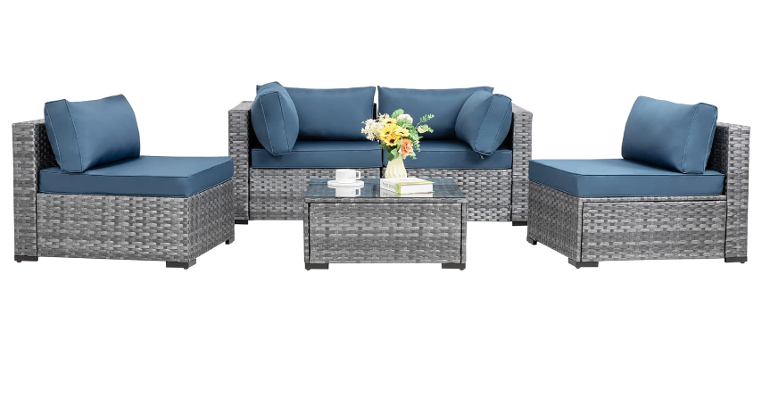 Shintenchi 5 Pieces Outdoor Patio Sectional Sofa Couch (check on Amazon)